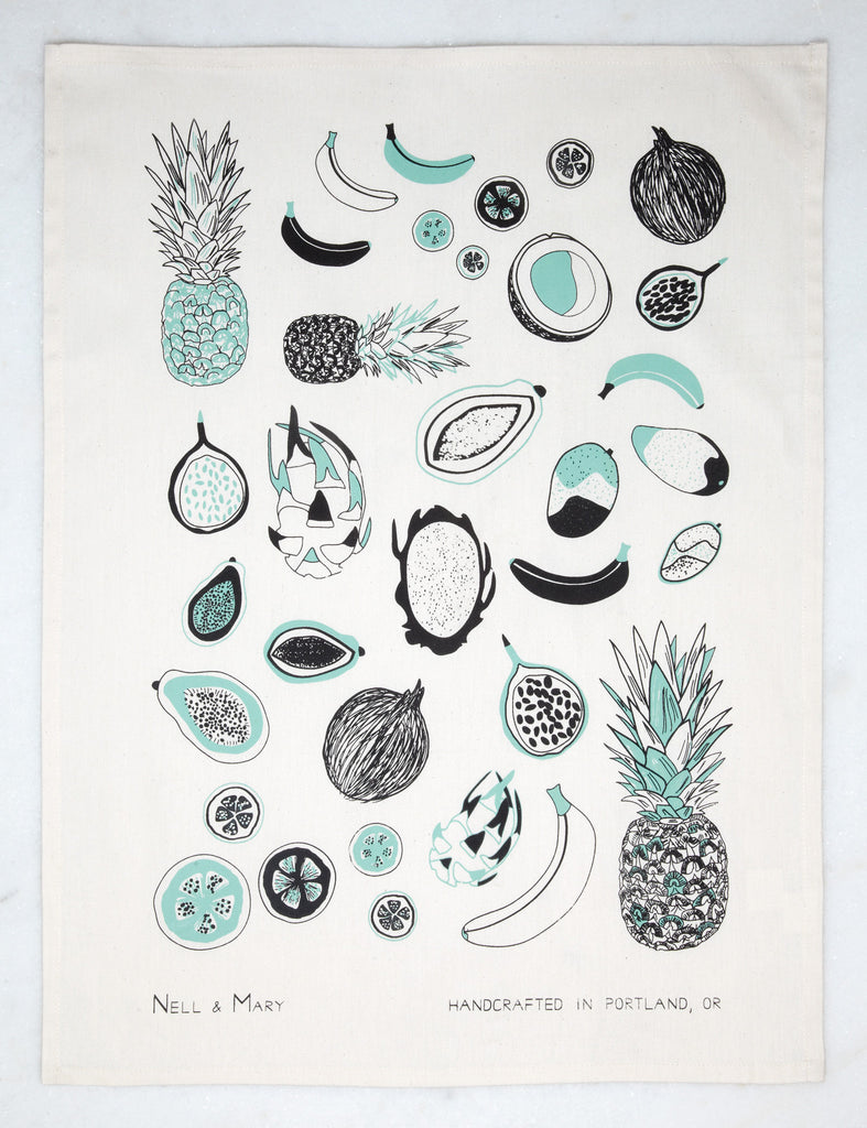 From the Prickly Piña, to the Crazy Coconut, and Gorgeous Guava -- our Tropical Fruit print Tea Towel is fresh, fun, and right in time to enliven your kitchen and table.